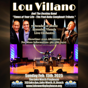 Lou Villano's show to Paul Anka, "Times of Your Life" - The Paul Anka Songbook Show HIS WAY-MY WAY, is a can't-miss event that has earned him rave reviews and standing ovations wherever he performs. Backed by his band, "Destiny," Lou Villano flawlessly embodies the spirit of Paul Anka, bringing to life iconic hits, for all you American Bandstand Alumni, such as "Diana," "You Are My Destiny," "Put Your Head On My Shoulder," and of course "My Way." Through multimedia elements and a special tribute to legendary artist and mentor to Paul Anka, Frank Sinatra, Lou Villano's show is a 90-plus minute journey through the timeless music of a music icon, and will have you singing along to those great hit songs. As many will tell you - "THIS IS A MUST-SEE SHOW"!